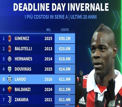 06年以来意甲冬窗截止日最贵交易:米兰3020万欧签圣地亚哥第1